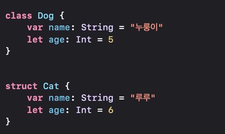 이제 Dog클래스와 Cat구조체의