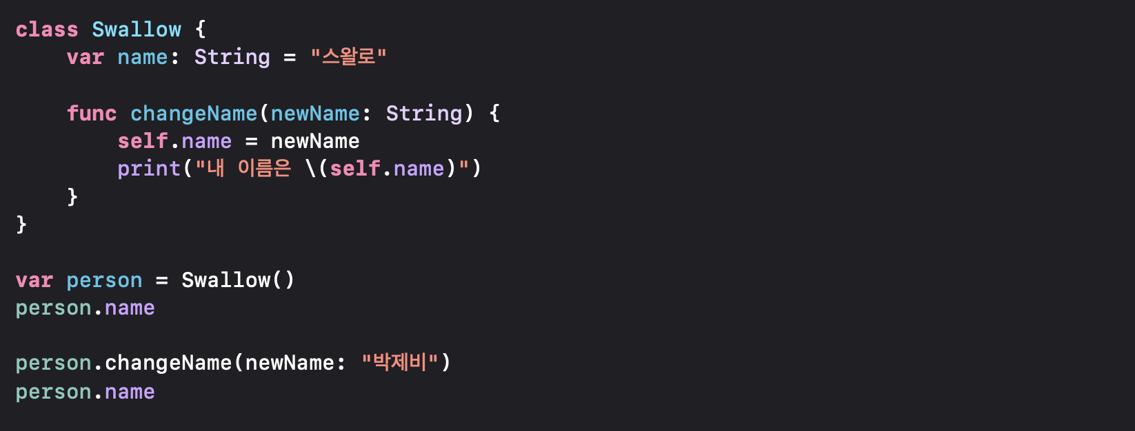 위의 예시처럼 Swallow.age라고도 접근이 가능하지만,