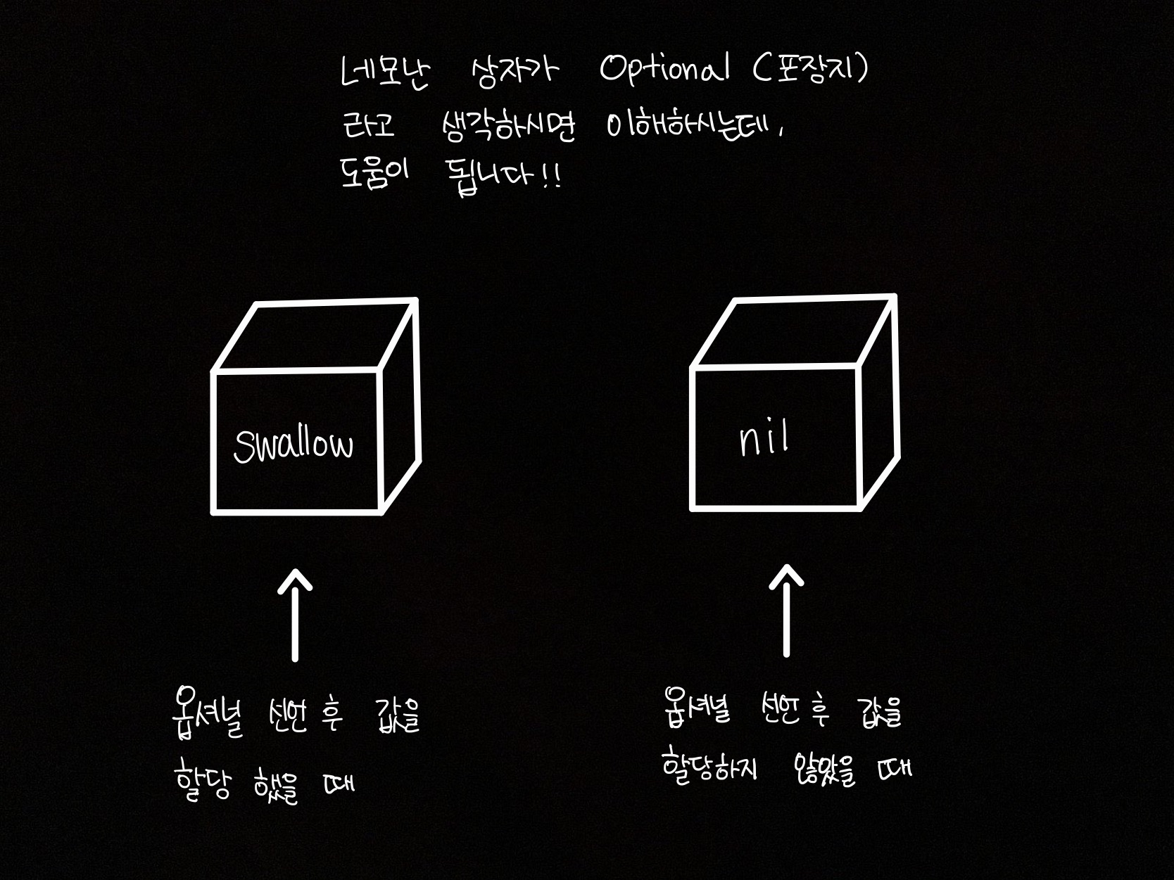 옵셔널 선언 후 값을 할당하지 않으면 자동으로 nil이 할당이 되는데