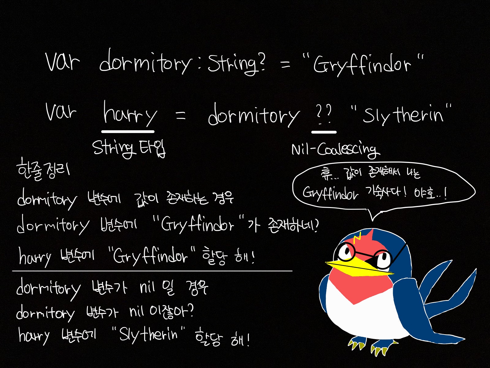 String? 타입인 "Gryffindor"의 옵셔널을 벗겨낸 후 harry에 할당합니다!
