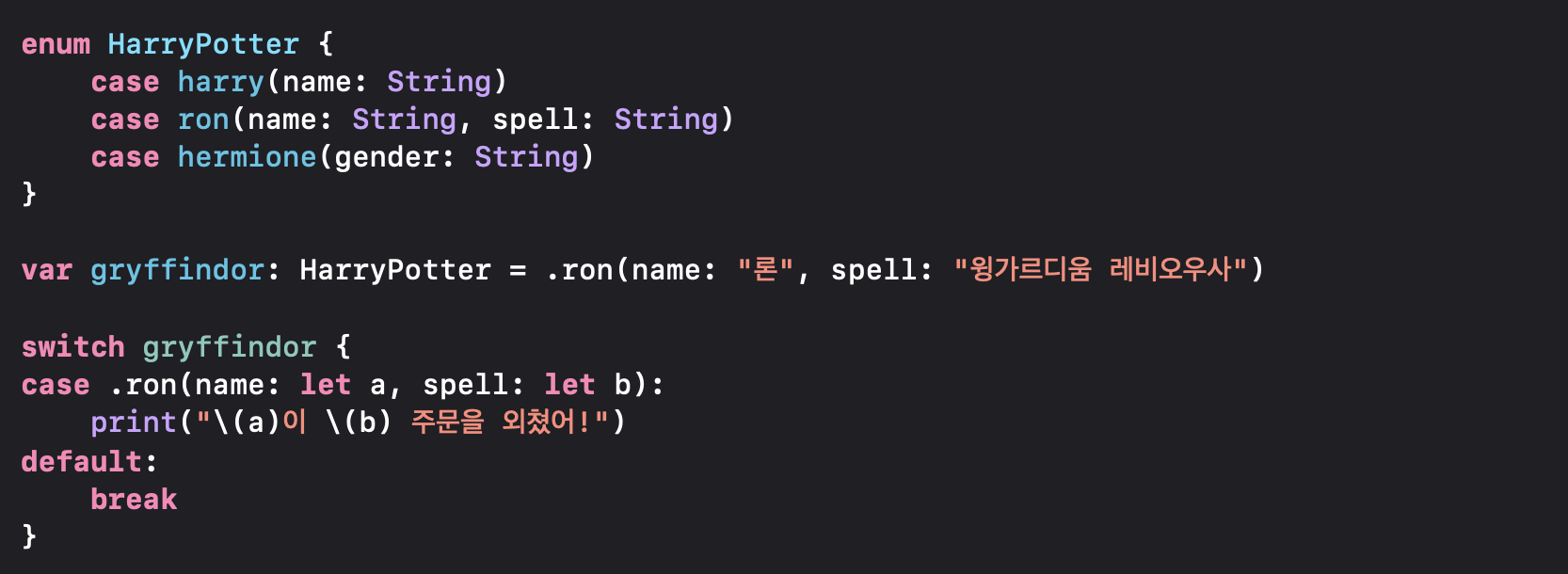 열거형의 case들이 들어간다고 말씀드렸잖아요?