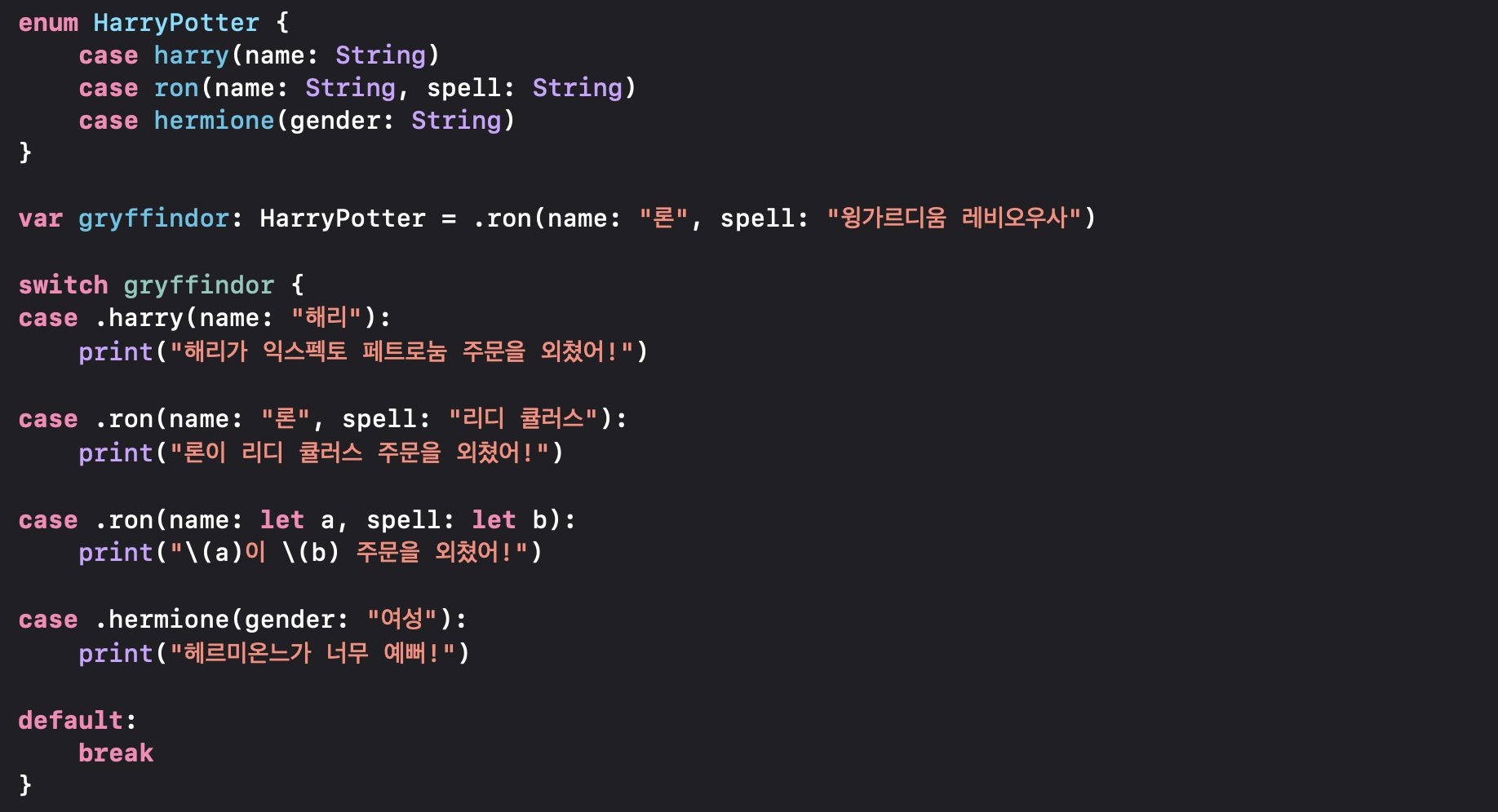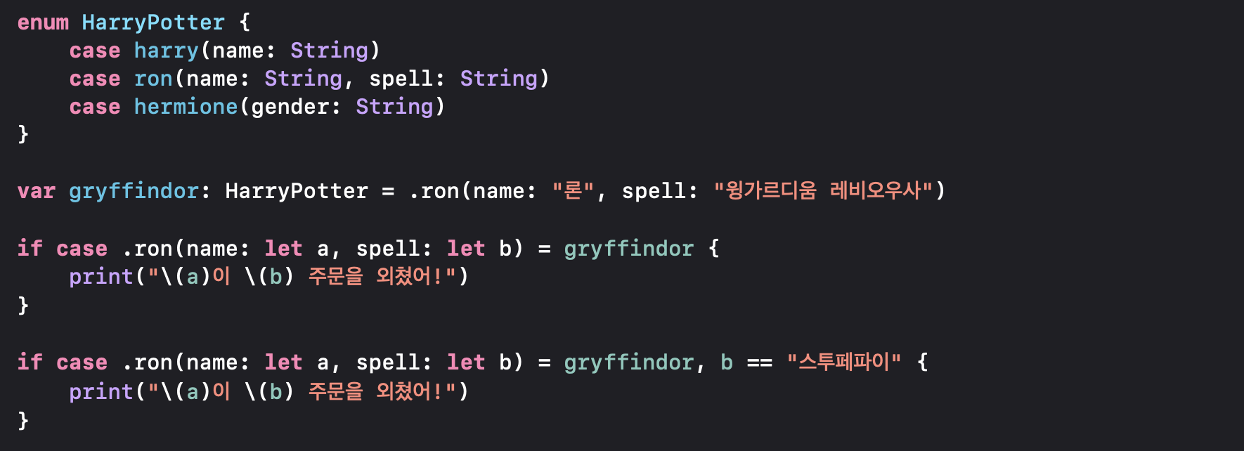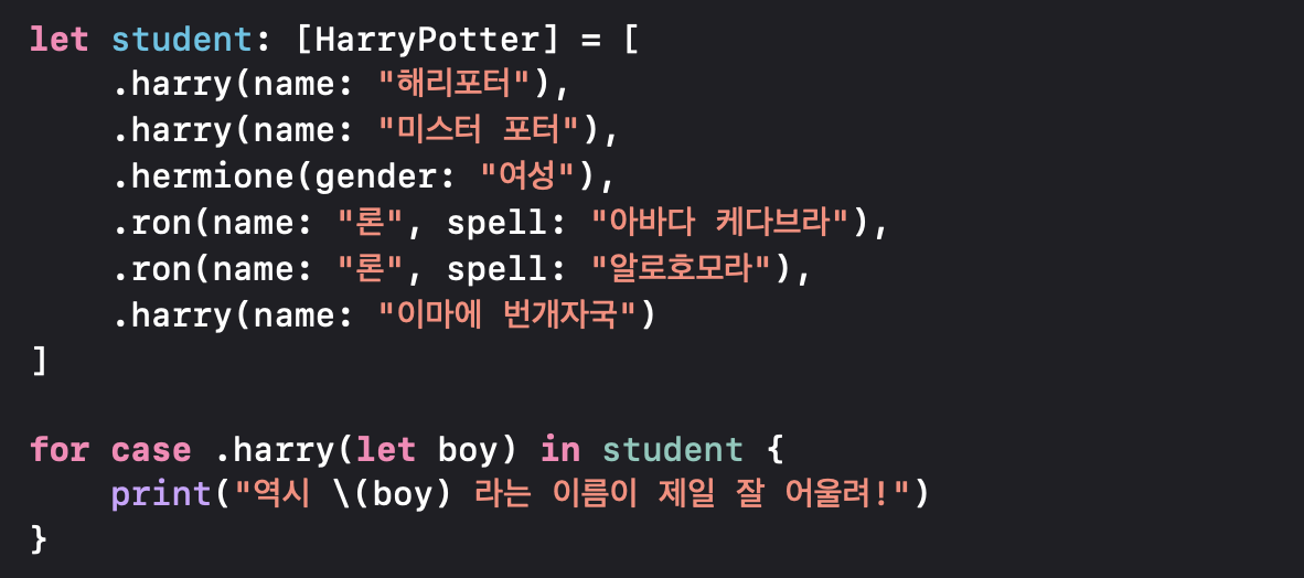 열거형 case패턴의 사용법과 사용하는 경우를 알아봐야 하겠죠?
